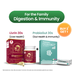 Thomson Livrin supports optimal liver function, aids detox, and strengthens immunity, providing powerful protection against everyday health challenges. Thomson ProbioGut promotes a healthy gut by balancing probiotics, improving digestion, and enhancing nutrient absorption, ensuring your family feels comfortable and energized.